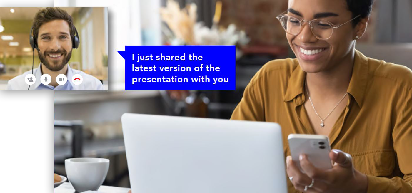 Workers can make calls, send messages and start video calls at any time and on their device of choice – PC, mobile, or tablet.