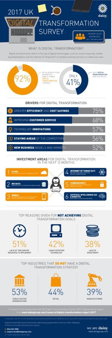 As part of its 2017 digital transformation survey, Daisy polled UK businesses (comprising 1-1,000 employees) to establish how they are getting on with digital transformation and provide an overall assessment of progress.